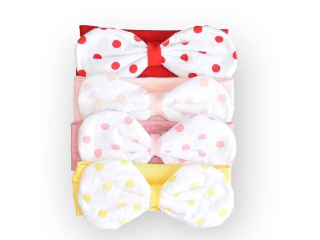 - detská čelenka s mašľou balenie: mix farba veľkosť: od 3 - 9 mesiacov obvod hlavy: 42 - 46 cm materiál: 95% bavlna, 5% elastan výroba: Turecko